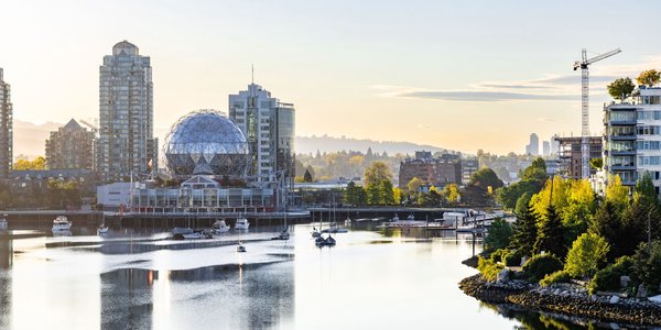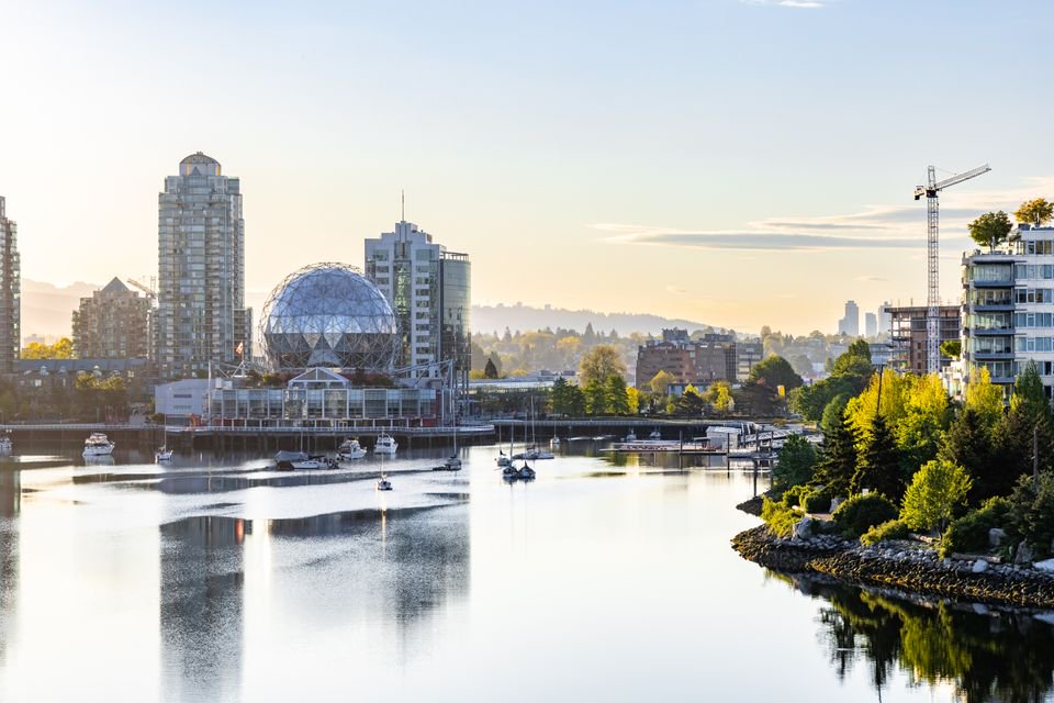 To get this shot of science world in Vancouver, you have to walk alongside the Cambie bridge and get to the halfway point during the morning golden hour.
